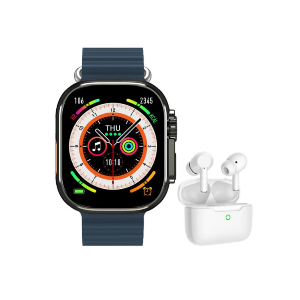 Functions: Make calls, answer calls, heart rate monitor, blood pressure monitor, sleep tracking, pedometer, sports modes, music control, remote camera control, stopwatch, weather forecast, alarm, notifications (SMS, WhatsApp, social media)