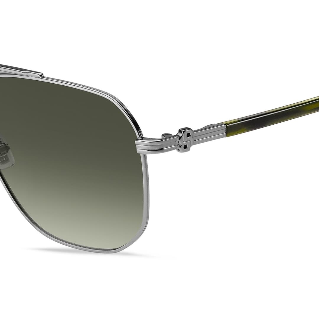 The combination of silver metal frame and green lenses offers a minimal yet striking look.