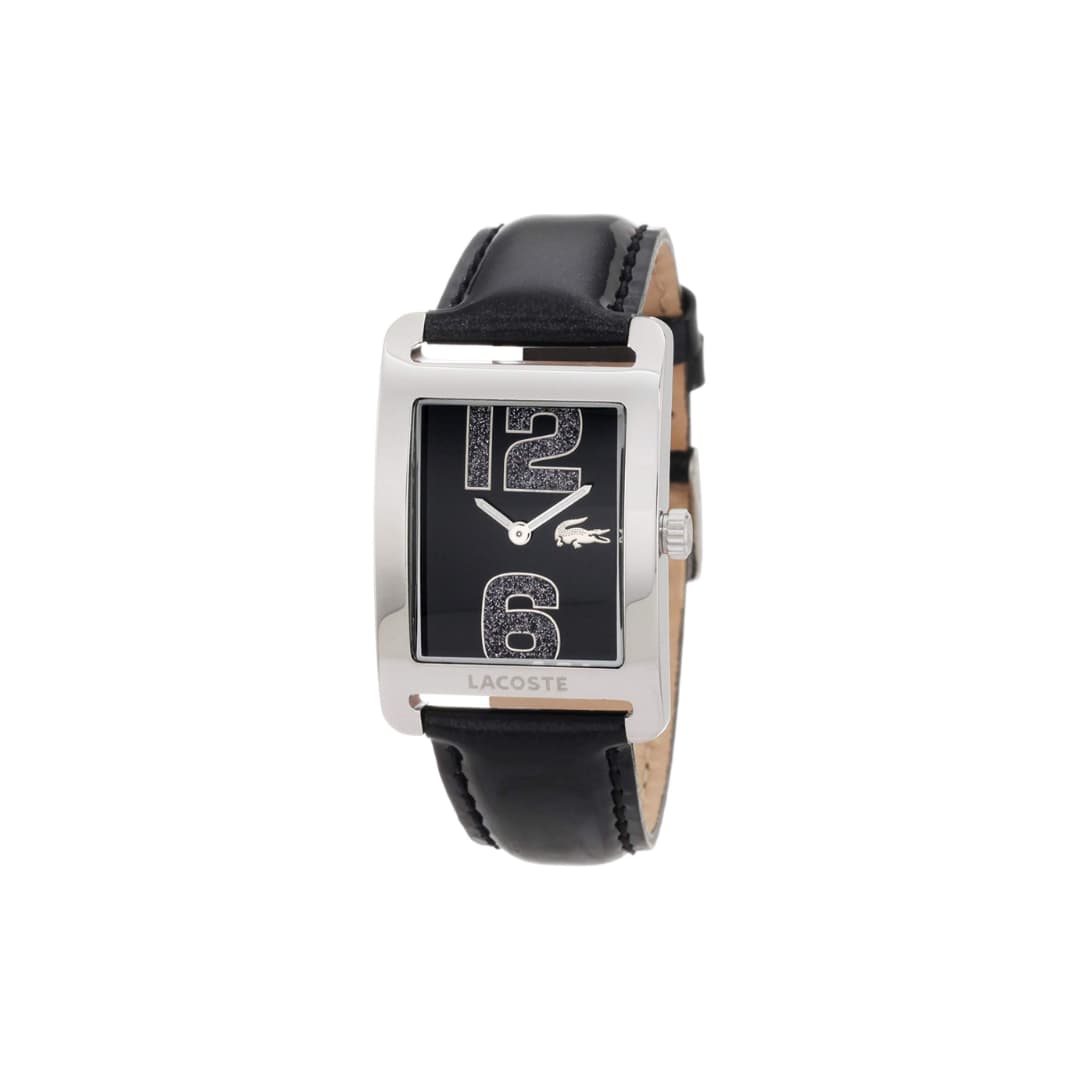 The iconic Lacoste crocodile logo is elegantly positioned on the right side of the dial.