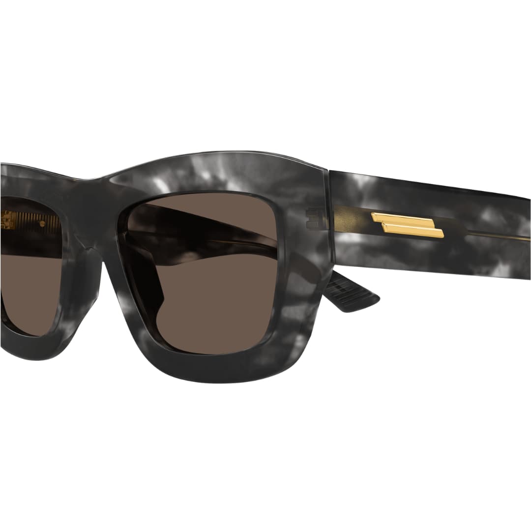 Mermer desenli asetat çerçeve ve altın detaylar, Bottega Veneta'nın sanatsal zarafetini yansıtıyor.