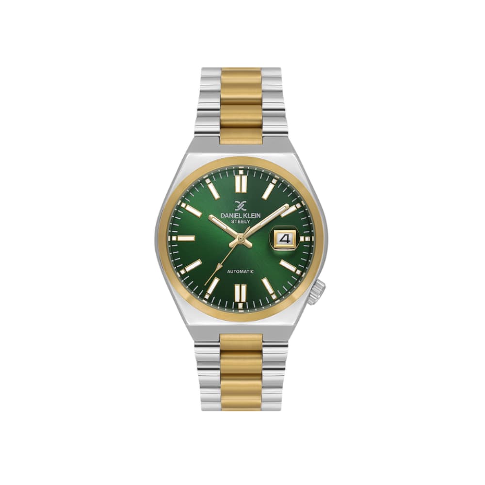 Yeşil güneş patlaması desenli kadran, altın tonlu indeksler ve akrep ve yelkovanla zenginleştirilmiştir. Saat 3 konumunda büyüteçli bir tarih penceresi bulunur.