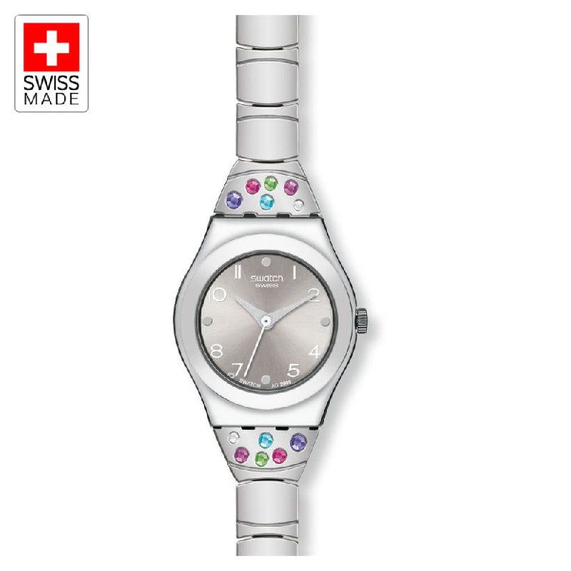 Kayış Ayrıntıları: Gümüş yüzey üzerinde çok renkli taş süslemeleri (mor, yeşil, mavi ve pembe kristaller)