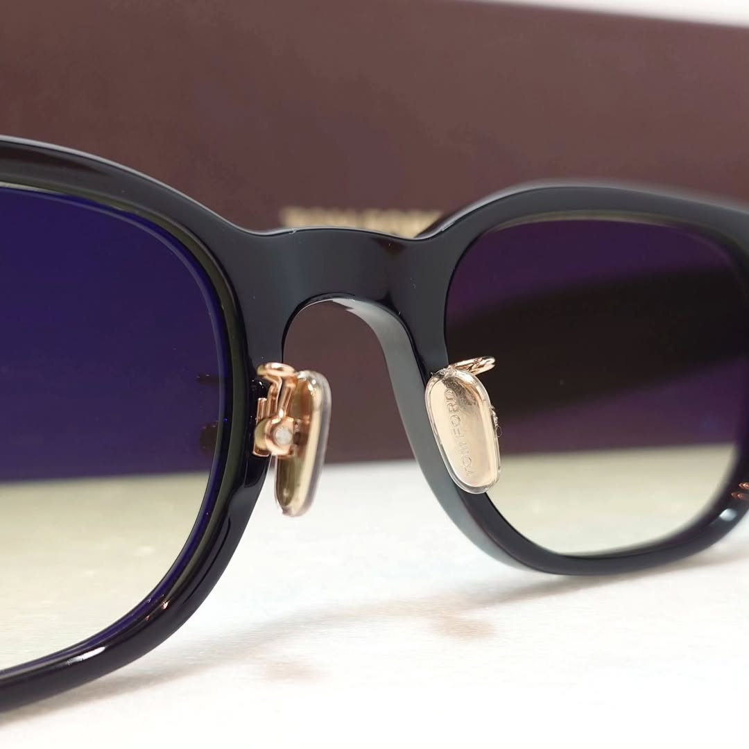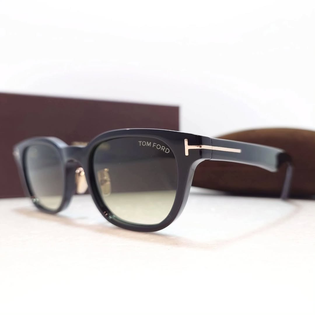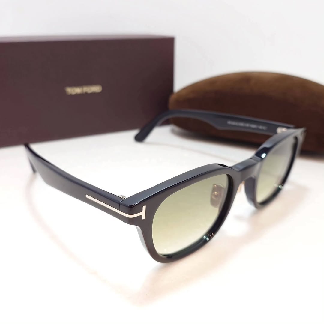 Şakak Detayı: Tom Ford'un ikonik metal "T" logosunun detayı